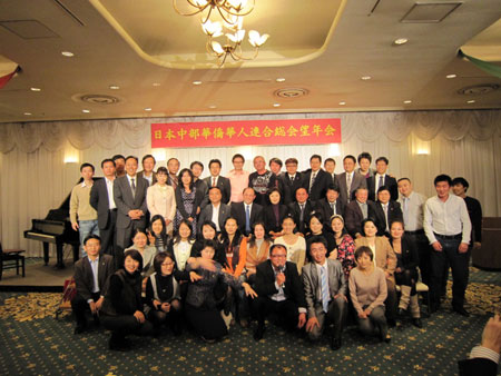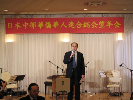 中新网12月16日电 据日本新华侨报网报道,12月13日,日本中部华侨华人联合总会2009年度忘年会在三重县合欢乡酒店举行。中部地区13个侨团、3家中资企业及各界华侨华人代表80多人欢聚一堂,中国驻名古屋张立国总领事出席活动并讲话。
