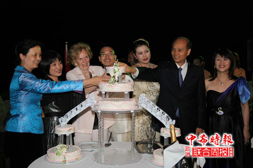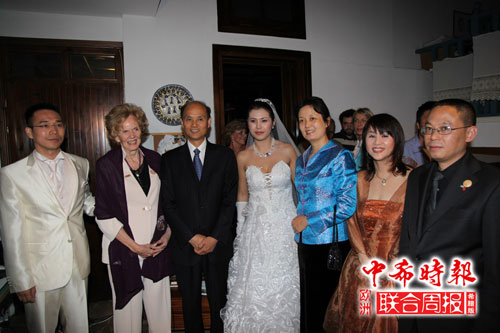 18日下午,新郎新娘以及希腊新任总理乔治.帕潘德里欧(George Papandreou)家庭的亲朋好友,部分政府要员,名流绅商,中国驻希腊大使罗林泉夫妇,领事部主任陈夏兴夫妇等三百多位嘉宾应邀出席了婚礼。