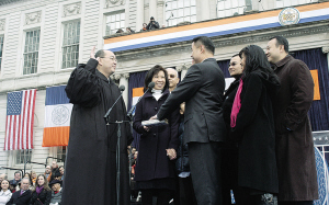 中新网1月4日电 据美国《侨报》报道,在新年的第一天,纽约迎来历史上首位亚裔主计长。华裔刘醇逸在家人的陪同下,于1日上午在市府大楼前正式宣誓就职,成为纽约市的第43任“第三把手”主计长。他在就职演说中承诺,将充分履行主计长的职责,和市长及公益维护人一道,确保纽约人有一个光明的未来。