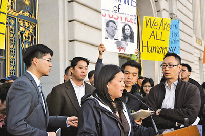 中新网5月6日电 据美国《侨报》报道,几个月来,旧金山市内尤其是湾景区、访谷区接二连三发生了华裔被非裔少年无故殴打的案件,更有两人因此丧生。“守望相助,共抗暴力”,继4月27日集会之后,旧金山市府门前4日晚再度爆发千人大集会,要求当局重视亚裔社区的诉求,采取长期措施保护华人的安全。