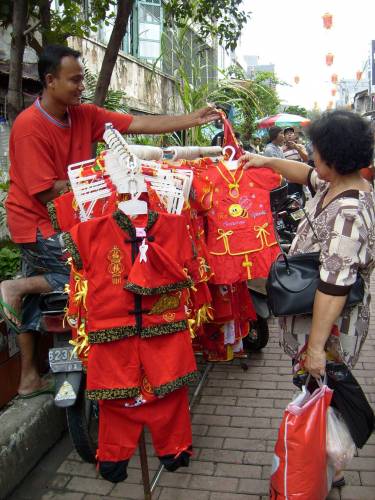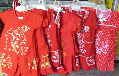 班芝兰一带售卖的春节服装,带有浓浓的中华风味,大街小巷卖的红衣,几乎都印制或绣上老虎图案的衣服,看来“虎年穿虎装”,预料将卷起今年春节穿着的流行风潮。