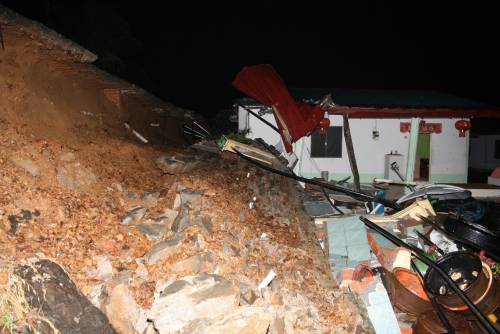 他受询时说,上周六下午3时许开始下雨,一小时后,此区发生停电事件。不久,在房里的妻子突然听到屋外传来异声,于是出外查看,结果惊见屋后高处住家的护土墙摇摇欲坠。