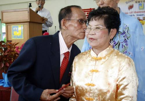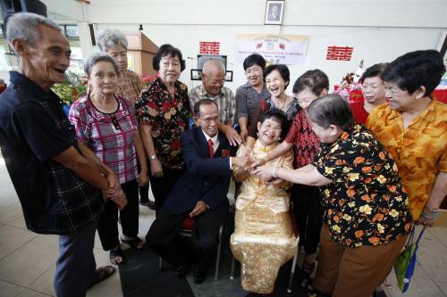 70岁的吴克贵于10日早在银禧安老院迎娶64岁的沈洪珠,并在安老院理事的协助下举行婚礼,邀请安老院300多名老人参与其盛。