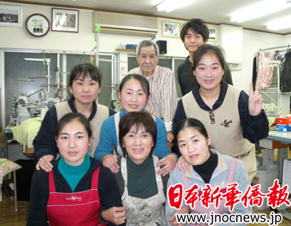 现在的日本,面临着缝纫工的高龄化,我们这些小企业只能依靠日本政府的外国人研修生制度。这些中国女孩子已经成为我们公司不可缺少的战斗力。作为慰劳,每年秋天我都会带她们去旅行。每完成一批工作后,我会和她们一起做咖喱一起品尝,圣诞节元旦的时候会举行卡拉OK大会,等等。
