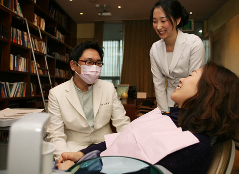 中新网1月7日电 据韩国《朝鲜日报》报道,5日,韩国首尔江南区清潭洞的牙科11层。“啊~决定治疗了吗?牙的哪个部分不合您的心意?”院长No Jeong-jun向身穿紫色针织T恤躺在诊疗台上的日本人患者问道。站在旁边的院方咨询服务师当即做了翻译。患者说“我的牙歪歪斜斜地太不整齐了”。她是3日为接受牙齿贴瓷整形治疗以4天日程访问韩国的日本主妇崎本。