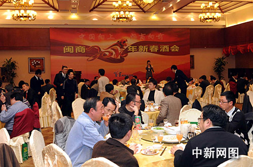 由《闽商》杂志社举办的“2010闽商新春酒会”21日晚在福州举行,主题为“中国向上,闽商向前”。福建省政协副主席、省工商联主席李祖可,福建省企业与企业家联合会会长黄文麟,福建省委统战部副部长、省工商联党组书记张剑珍,福建省委宣传部副部长、外宣办主任、省政府新闻办主任朱清,福建省新闻出版局副局长蒋达德,中新社福建分社社长、《闽商》杂志社社长徐德金等出席酒会。