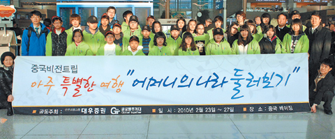 2月23日上午7时,在仁川机场集合的30名孩子精神抖擞。他们将从当天到27日游览中国天安门广场和故宫、长城、中国科学技术馆、北京大学等。Gobal Together董事长Park Beom-jin说:“中国女性的子女在韩国感到些排斥感。此次为他们安排旅行是为了让这些孩子在参观中国文化遗产后,克服这种排斥感,并作为有自豪感的韩国人生活下去。”