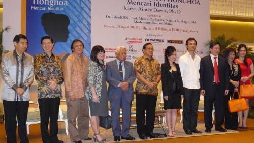 中新网4月16日电 据印尼《星洲日报》报道,印尼福清公会总主席俞雨龄长女俞文娟印译本新书《印尼华人寻找身份与定位》(Orang Indonesia Tionghoa Mencari Identitas),于周四(4月15日)在雅京谭林街UOB大楼举行隆重发布仪式,逾300人出席。嘉宾有中国驻印尼大使馆总领事锺瑞明、前国会议长阿克峇.丹绒、前政要苏多摩、华社领导陈大江、纪辉琦、张锦雄、杨秉书、潘万鑫、林文忠、姚忠从、李伯巧等。