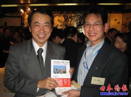 日本湖南人会会长段跃中回忆了向菅直人赠送中国人日语作文大赛获奖作品集《对日中友好的建议》及几次和菅直人交流的故事。段跃中指出,这次菅直人当选新的日本首相,对中日关系会起到良好的促进作用,期待菅直人更加发挥中国留学生的作用,开创中日交流的新局面。