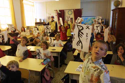 孩子们纷纷亮出自己写得篆体“鸟”字。(法国《欧洲时报》)