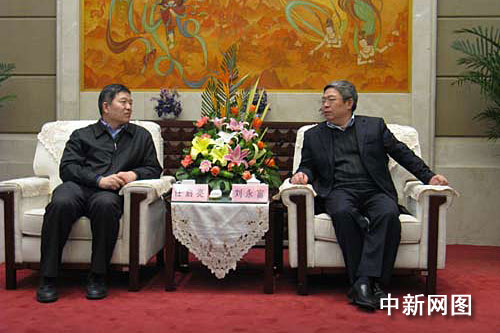 中新网兰州1月14日电(记者 张玉玺)今天中午,甘肃省副省长刘永富在宁卧庄宾馆中小楼会议室会见了来甘肃慰问的国侨办副主任任启亮一行。