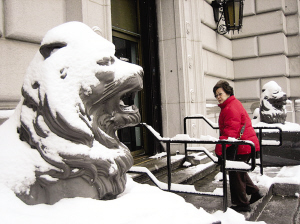 中新网3月4日电 据美国《星岛日报》报道,3月2日,纽约地区受到入冬以来最大的狂风雪侵袭,据国家气象局资料,纽约市1日至少下了1呎雪,这场大雪不但造成了纽约市车流速度大减,更让纽约地区各机场取消了超过800班次的飞机。华埠亦面对人流锐减,商家门庭冷清的局面。