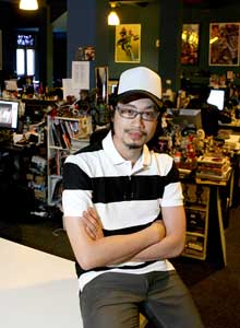 电脑里充满动感的人物与画面,与工作室里多数戴着耳机工作的的人,一动一静,不协调里散发一股神秘。他们像守候者,随时要抓牢闯入脑际的窜动灵思。工作室里也有电子游戏机、特大电视机和电玩,供大家随时松懈身心。
