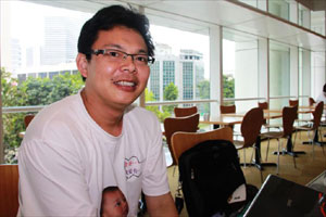 中新网3月9日电 据新加坡《联合早报》报道,接受采访的时候,新加坡36岁的华人新移民方剑刚坐在国家图书馆内咖啡厅的一隅,手指在笔记本电脑上噼里啪啦地敲个不停,他正通过QQ和MSN,在网上跟客户沟通。自从2009年8月注册了自己的公司——YIMAGE印象工作室之后,方剑刚的生活开始进入一个全新的状态。