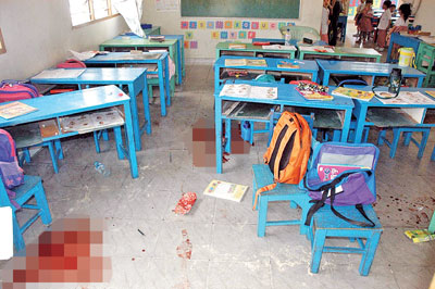 中新网3月11电 据马来西亚《光华日报》报道,10日上午10时左右,在马来西亚麻坡市阿都拉曼路一所幼稚园,3名6岁小童遭一蒙面男子携铁锤袭击,其中两名为华裔小童陈家毅、郑辉胜。这是继半年前疯汉挥刀砍伤孩童事件后,麻坡今日再传出蒙面男子蓄意闯入幼稚园的事件。