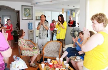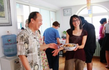 7月15日,青岛大学华文学院特地为参加2010年外国人领养中国儿童汉语和中国文化夏令营营员的妈妈们准备了一堂别开生面的烹饪课,华文学院的周教授、唐老师在烹饪课上当起“大厨”,“洋妈妈”们学习热情很高,饶有兴趣的讨教中国菜的做法。