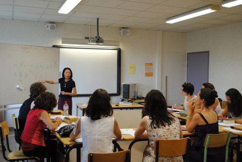 十六名来自全法各地的汉语教师参加了此次培训。培训根据母语非汉语的中文教师及母语为汉语的中文教师分成了两个班,旨在提高汉语教师的汉语水平和教学水平,同时针对“法国二阶段教师资格认证(CAPES)”考试安排了相应的学习内容。培训期间成功地建立了一个“纯汉语”语言环境,无论是培训课程还是课下交流,教师们都完全用汉语交流教学经验。