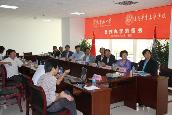 中新网10月27日电 据华侨大学新闻网消息,10月25日,华侨大学与泰国普吉泰华学校合作办学筹备会在华侨大学厦门校区举行。会议由华侨大学华文教育办公室主任赵明光主持,建筑学院副院长申晓辉及华教办全体工作人员与泰国普吉泰华中学考察团一行细致讨论了双方合作建设国际学校的建筑设计方案与教学相关工作。