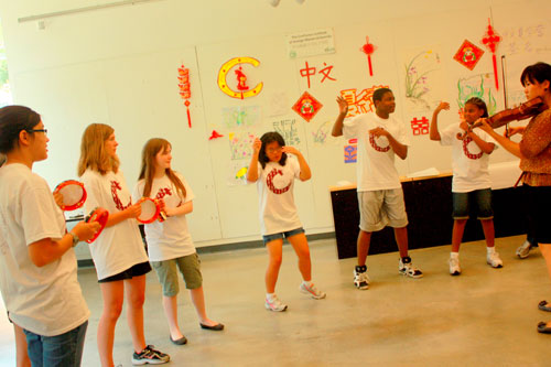 此夏令营主要针对本地7岁-18岁青少年,按照年龄层次分为小学班和中学班。在夏令营里,老师们将文化艺术和汉语教学进行有机结合,通过个性化的课程安排和生动活泼的启发式教学手段,充分调动学生们的汉语学习热情,同时也可以接触到博大精深的中华文化。根据不同年龄层学生特点和兴趣,教师们将书法、绘画、音乐、舞蹈和武术等中国文化元素融入到每天的课程内容中,采取了游戏、表演等互动形式,收到了非常好的效果。