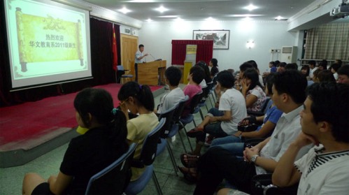 出于为新生的学习、安全和生活等方面的考虑,9月4号系里组织了新生的汉语水平分班考试。根据考试情况本届新生被分成A、B、C1以及C24个班级。晚上7点,系里安排在办公楼309会议室进行了新生入学安全教育以及学分制、签证、早读考勤等初到校时应注意事项的说明、讲解,并提供了详尽的周边的交通饮食等生活信息。