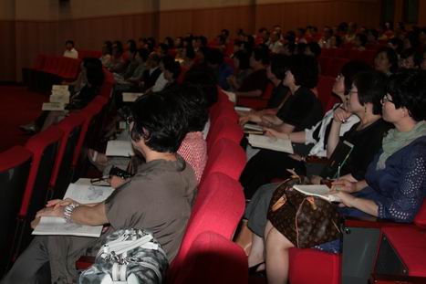 报告在全场400多位听众的热烈掌声中拉开帷幕。尹岗寿的报告在“你所了解的中国与你所不了解的中国才是一个完整真实的中国”中开始。在长达两个半小时的讲座中,尹岗寿图文并茂地介绍了中国的基本地理概况、各区域的地形地貌、风景名胜及人文风光等。通过尹院长风趣诙谐的语言,向与会的韩国人展示出了一幅幅瑰丽多姿的中国风景长卷及各具特质的区域人文风俗,让与会者了解一个客观全面的中华大家庭。