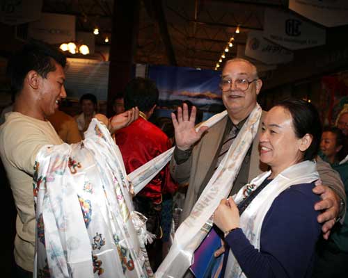 美国国会众议员艾尔·格林的华裔代表谭秋晴女士用藏语“扎西德勒”预祝展览取得圆满成功,并向云南省对外文化交流协会赠送了艾尔·格林众议员的贺信。