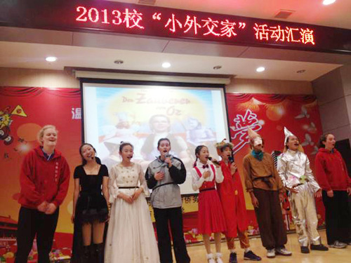 西摩登学院学生还积极参与了温州市实验中学开展的“小外交家”活动。该活动根据学生的认知水平和英语能力水平设置了不同的项目,有英文歌曲演唱、英语讲故事、英语电影对白配音、英语短剧表演等。同时,各班还根据本班的节目内容开展了英语海报比赛。西摩登学院三名学生不仅全程参加、悉心指导“小外交家”活动,还与温州市实验中学八年级学生共同参演了英语舞台剧《绿野仙踪》等节目,中澳文化在学生们的精彩表演中得到了充分的展示和交融,不仅增进了双方的了解,更加深了彼此的友谊。(刘时敏)