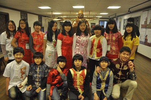 韩国孔院办汉语文化冬令营 60小学生参观华夏馆