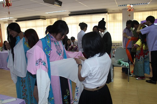 活动结束后大家纷纷身着戏服合影。师生们表示非常高兴参加今天的活动,在泰国能体验中国京剧文化这样的机会非常难得。曼松德大学中文系三年级的学生黄志远(Mr.Decharwat Chotirat)表示:“中国京剧里的学问真不少,历史、文化、语言都融入了小小的舞台。感谢孔院用这样的方式把中国文化呈现在我们面前。”