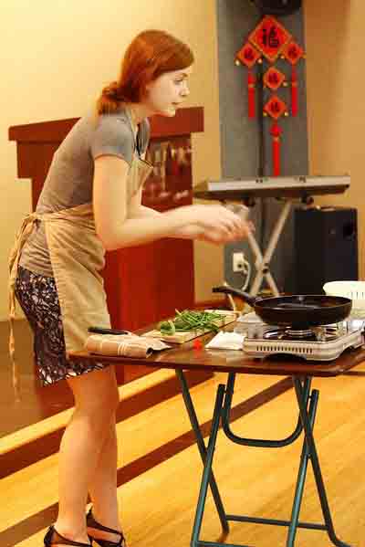 约克大学的麦莉莉获得了二等奖,她演讲中说,在读书期间结交了很多中国朋友,迷恋上了中国的美食,特别喜欢四川辣辣的菜肴,非常迷恋“舌尖上的中国”。她自带厨具和原料,还现场表演了原汁原味的中国烹饪。