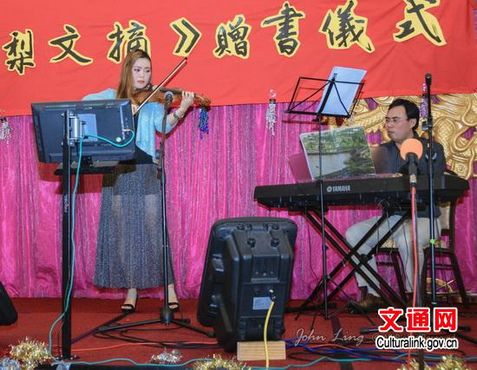 赠书仪式后,新西兰黄河交响乐团的艺术家表演了小提琴独奏、钢琴独奏、二胡独奏等节目。在2014全球华人歌唱大赛中获得新西兰赛区冠军的高乙文,在赠书仪式上再度演奏了《蓝色多瑙河》。毕业于中央音乐学院的王欣怡演奏了二胡曲《赛马》。艺术家们还演奏了钢琴独奏《黄河》片段及《渔舟唱晚》等曲目,为赠书仪式增色不少。