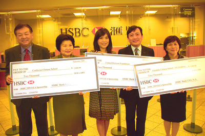 中新网9月3日电 据美国《世界日报》报道,美国汇丰银行圣盖博市分行本月1日捐赠6000元给三家华人中文教育机构,以回馈华人社区,推动中文教育。
