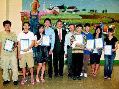 当天首先颁发2009年张徐雅华纪念奖学金-AP中文学者奖,奖励优秀中文AP学者,每名获奖状及奖学金50元。该校校长黄元杰表示,此优异成果归功于学生认真学习,及老师的耐心指导。