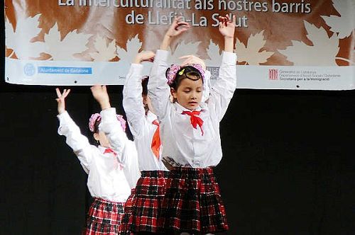 中加友好学校文艺队的队员们,在结束一天的中文课后,在中国民族文化协会会长陈淑芬、校长叶爱烈等人的带领下,来到了活动的现场。中加友好学校文艺队首先为观众们表演歌舞“让我们荡起双浆”,这鲜亮的服装、不同的韵律,给西班牙人以全新的观感。随后上场的腰鼓队员们,变换着队型,整齐划一的表演足见文艺队的演出功底。中加友好学校文艺队的这帮孩子们、由于平时经常排练,所以每当这支久经沙场的队伍被拉出来时,不论是在什么样的场合,她们的演出都非常成功,观众们报以热烈的掌声。