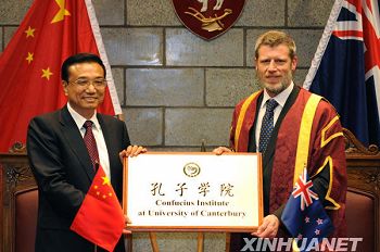 当地时间1日下午,位于新西兰南岛基督城的坎特伯雷大学迎来了一批来自远方的尊贵客人。中国国务院副总理李克强一行来到坎特伯雷大学校园,出席该校孔子学院成立仪式。