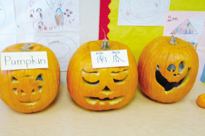 幼稚班的墙壁上挂满了用中文书写的数字,还有用中文标记的各种动物图片。一年级的童老师介绍说:“目前班级有14名学生,现在基本都是用英文讲课,等到所有学生都了解了课堂规则并且熟悉了这里的学习环境,我会给每个学生起一个中文名字,这样他们每次做作业的时候都可以写在英文名字的旁边。”