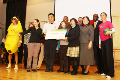 中新网11月11日电 据美国《世界日报》报道,美国浆宝果汁公司9日捐款900美元给旧金山中文沉浸学校,该公司总裁兼执行长詹姆斯怀特指出,浆宝果汁跟全美教师家长联合会合作,捐款给全美45所学校,受惠学生遍及23州,目的在鼓励学生多多食用蔬果,加强运动,过健康的生活。