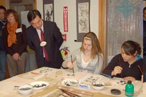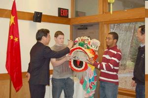 揭牌仪式上,黄屏应邀为舞狮点睛,随后参加语言村“实地考察之旅”项目的学生表演了舞狮子,为挂牌仪式增添了浓浓的节日气氛。
