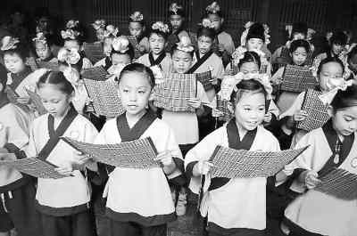 近日,蒙学读物《弟子规》走进了北京市不少小学课堂。这只是国学热的一场小景。穿汉服、行古礼、背儒经,越来越多的形式渴望上演一场逼真的国学普及盛况。此外,“天价国学班”光明正大地开班了,一些名校也开始成立或恢复设置国学研究院。