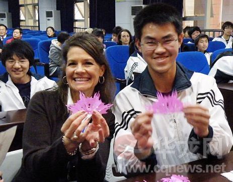 “中国最早的文字起源是什么?中国最早的文字为什么称为甲骨文?”12月7日下午,2009“汉语桥——美国中小学校长访华之旅:迈出新步”代表团到位于渝北区的重庆市暨华中学校参观访问。9名美国中小学校长在与师生共同上课的过程中,深刻感受到了汉语的无穷魅力。
