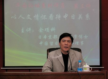 余项科结合自己多年来在日本工作生活的经历,阐释了“人文情怀”的含义,倡导同学们从“人文”的角度来理解当今的中日关系,从“世界文化”的视角来审视中日关系。