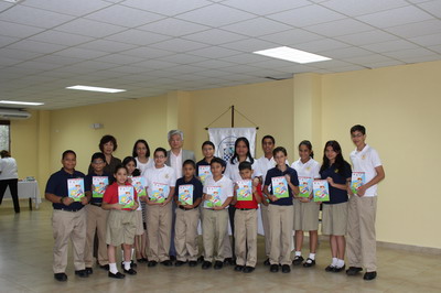 巴拿马双语学校校长艾内伊达代表学校接受捐赠。
