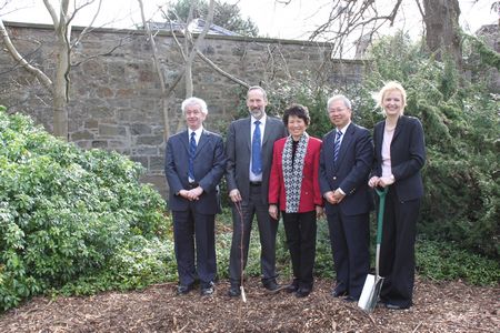 中新网3月30日电 据中国外交部网站消息,近日,为使苏格兰和中国在教育、文化方面的合作万古长青、源远流长,出生在香港的友华人士皇家爱丁堡植物园园长布莱克莫尔教授特向位于爱丁堡大学的苏格兰孔子学院赠送了一棵中国枫树。应该院院长费南山的邀请,驻爱丁堡总领事谭秀甜、公参田小刚、苏格兰政府国际司史密斯副司长、爱大校长奥谢亚教授及布莱克莫尔教授,在孔院花园共同栽下这株象征中苏友谊长存之树,共祝双方合作如同雨后枫苗一样茁壮成长,生生不息。