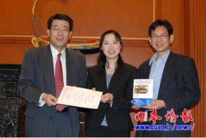 中新网4月16日电 4月16日下午,中国人民对外友好协会副会长兼中日友好协会副会长井顿泉,在北京接受了日本侨报社日中交流研究所所长段跃中的访问,并为该社主办的“日本人汉语作文大赛”一等奖获得者福森亚希颁发了首个“中日友好协会奖”。