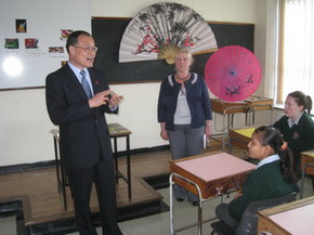 下午2时30分,刘碧伟来到科克市圣阿洛西斯女子中学,为该校汉语课堂剪彩并讲话。他对校方重视汉语教学表示感谢,祝贺该校汉语课堂在科克大学孔子学院的帮助下成功开设,表示大使馆将全力支持汉语课堂的发展。他勉励同学们持之以恒,学好汉语,为增进中爱两国的友谊做贡献。最后,在校长菲茨杰拉德-史密斯的陪同下,刘碧伟兴致勃勃地参观了圣阿洛西斯女子中学的艺术课堂、科学实验室和家政课堂,品尝了同学们亲手烘焙的点心。