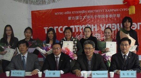 中新网5月26日电 据国家汉办网站消息,5月21日,蒙古国立大学孔子学院隆重举行了春季学期结业典礼。院长于健、副院长其米德策耶、院长助理朱军利及专家教师乌兰哈达出席了结业典礼。
