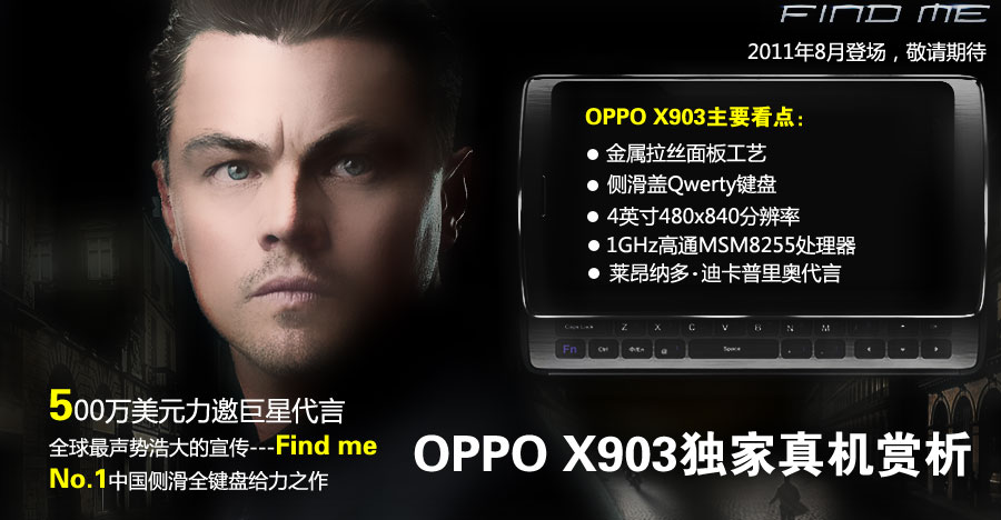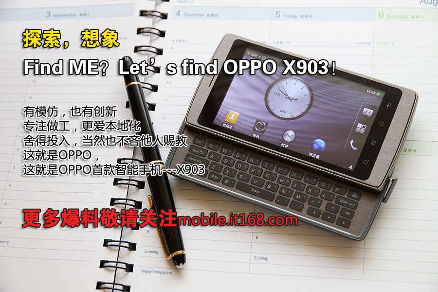 侧滑盖QWERTY键盘智能手机 OPPO X903图片解析