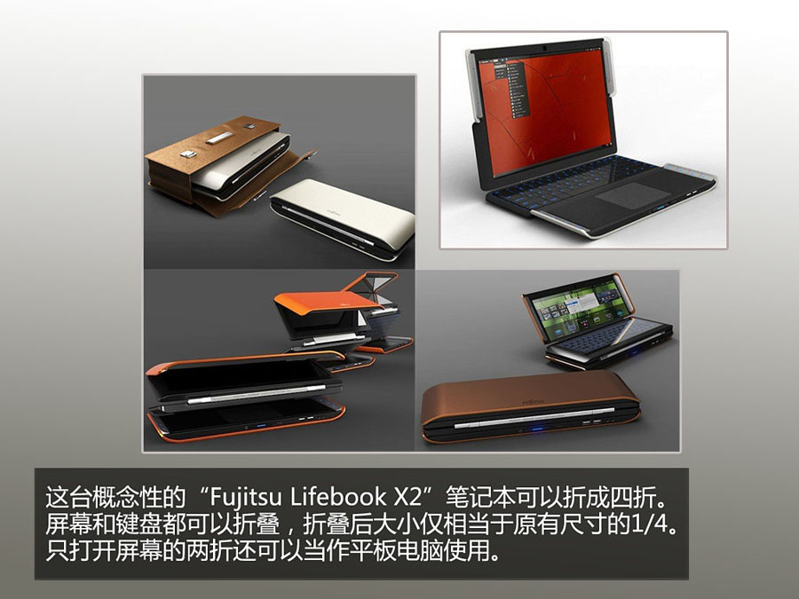 这款笔记本主要采用了OLED触摸传感显示屏和特殊的硬盘技术,它的键盘和显示屏就犹如一张软纸,可以随意弯曲,能让用户获得飘然的使用感觉。