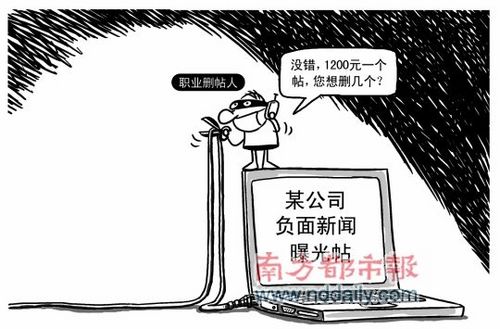 “论坛都有版主对网友发布的信息进行审核,而企业如果觉得帖子不真实,影响了企业的声誉,可以通过与网站负责人接洽的方式来删除或修改帖子,但职业删帖人直接删帖,则明显伤害了发帖人的言论自由。