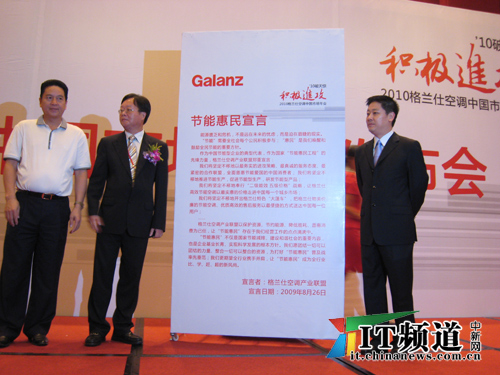 8月26日,格兰仕空调联合上下游产业链伙伴代表发布了《节能惠民宣言》,宣称在2010年度“将坚定不移地奉行‘二级能效 五级价格’战略,让格兰仕高效节能空调以最实惠的价格走进中国每一个城乡市场”。中国家电协会副秘书长徐东生认为,格兰仕如此大力度地普及节能空调,对国家“节能惠民工程”等政策的推进具有很好的示范带头作用。国家“家电下乡”、“节能惠民”、“以旧换新”等政策的共同主旨之一,就是要扩大节能产品的需求、引导家电行业升级。
